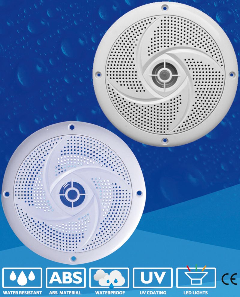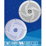 Difuzoare marine cu montaj în două căi, atât pentru interior, cât și pentru exterior. Fabricat din ABS, rezistent la razele UV, complet impermeabil IP67. Con din polipropilenă cu suspensie din cauciuc și tweeter. Art. 629411 este echipat cu LED interioare de fulgere fix albastru.