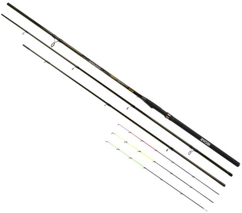 Ryobi Amazon Feeder este o lanseta progresiva cu foarte mari rezerve de putere, este usoara, cu o revenire foarte rapida (nu balangane), caracteristici care cresc precizia in lansare. Cele 3 varfuri interschimbabile ofera pescarului posibilitatea de adaptare la rigorile fiecarei partide de pescuit.