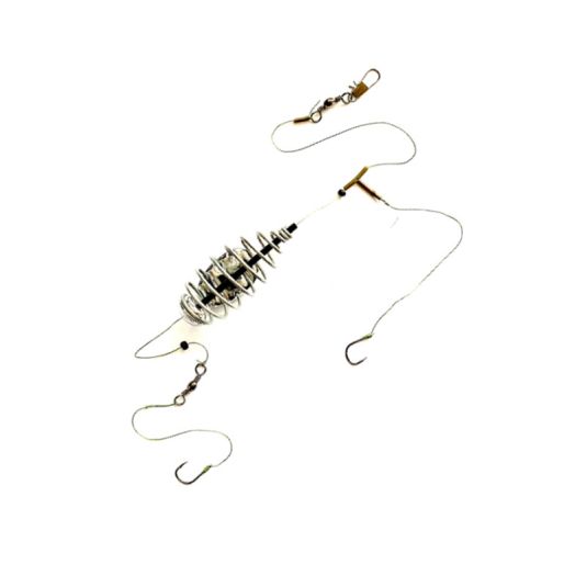 Mostiro Momitor Inline cu Arc este o montura gata de a fi pescuita. Firul textil de care beneficiaza este extrem de rezistent la abraziune. Accesoriile prevazute, sunt extrem de calitative, avand o rezistenta excelenta la socurile mecanice. Momitorul inline, de tip arc, permite incarcarea manuala, putand fi folosit atat cu nada, cat si cu pelete sau alte tipuri de momeli, indiferent de nivelul de granulatie. Carligele cu care a fost echipata sunt extrem de ascutite, fapt ce va asigura o fixare mult mai buna in gura pestelui.
