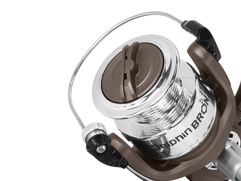 Este o mulineta simpla, dar foarte robusta. Este conceputa pentru o manipulare confortabila, care va permite pescarului sa se bucure de timpul petrecut pe apa. Tamburul mulinetei are clips de plastic care prinde firul pentru a arunca cu precizie in acelasi loc. O frana sensibila cu o cursa lina functioneaza bine chiar si in cazul unui peste necrutator si ajuta la reglarea fortei atunci cand pestele trage de fir. Delphin Bronz dispune de mai multe dimensiuni, de aceea este potrivit pentru diverse tehnici, cum ar fi feeder, pescuitul la pluta sau pescuitul la spinning.