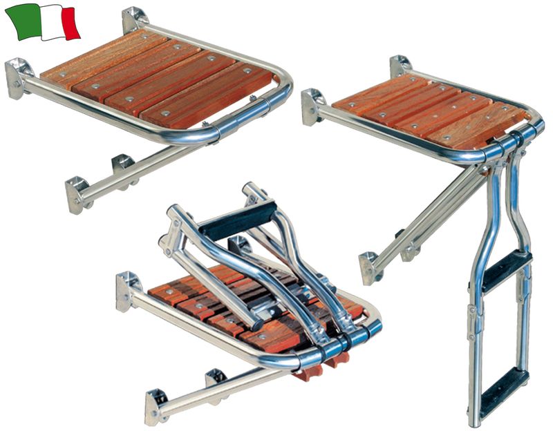 Platformă din inox şi lemn.
