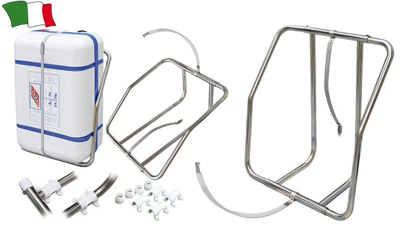 Suportul plutei de salvare din INOX AISI 316 se potriveste diferitelor plute de salvare de pe piata, fixarea acestuia poate fi pe pereti sau pe amvon in pozitie verticala.