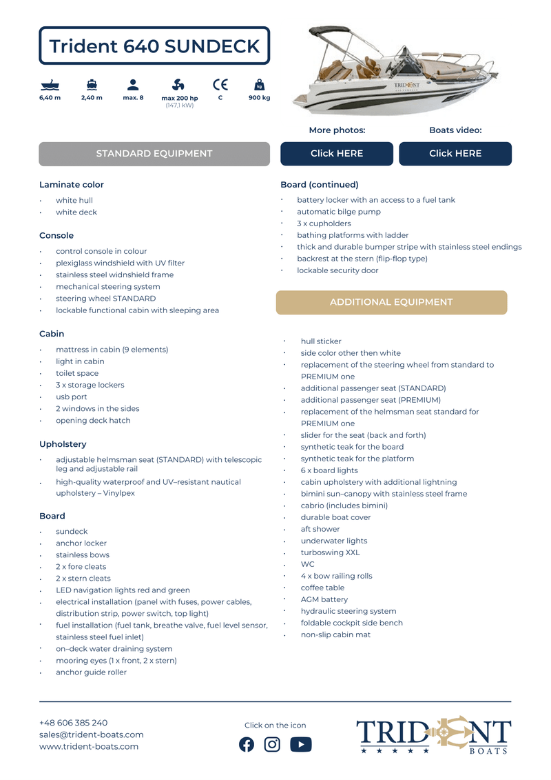Trident 640 SUNDECK vine cu echiparea standard la pretul afisat, pentru configurare si detalii intrati in legatura cu noi!