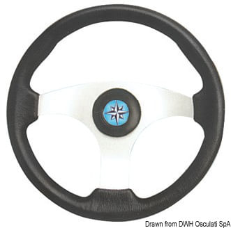 Butuc central prevăzut cu con universal, spițe din aluminiu anodizat, coroană din poliuretan moale.